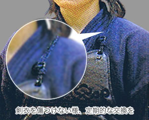 胴ヒモは長い間使っていると剣衣の汗と塩がしみ、ヒモ自体がヤスリのようになってしまい、剣衣の肩の部分に穴をあけてしまいます。胴ヒモを定期的に替えることで剣衣も長持ちします。
